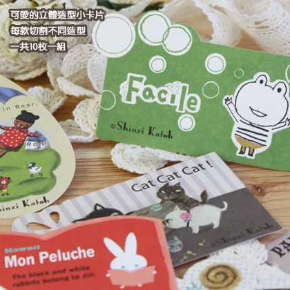 產品說明:可愛的立體造型小卡片,每款切割不同造型,一共10枚一組,寫上心意送給朋友維繫彼此情誼。也可放在相框裡當作插畫擺飾,增加生活樂趣。